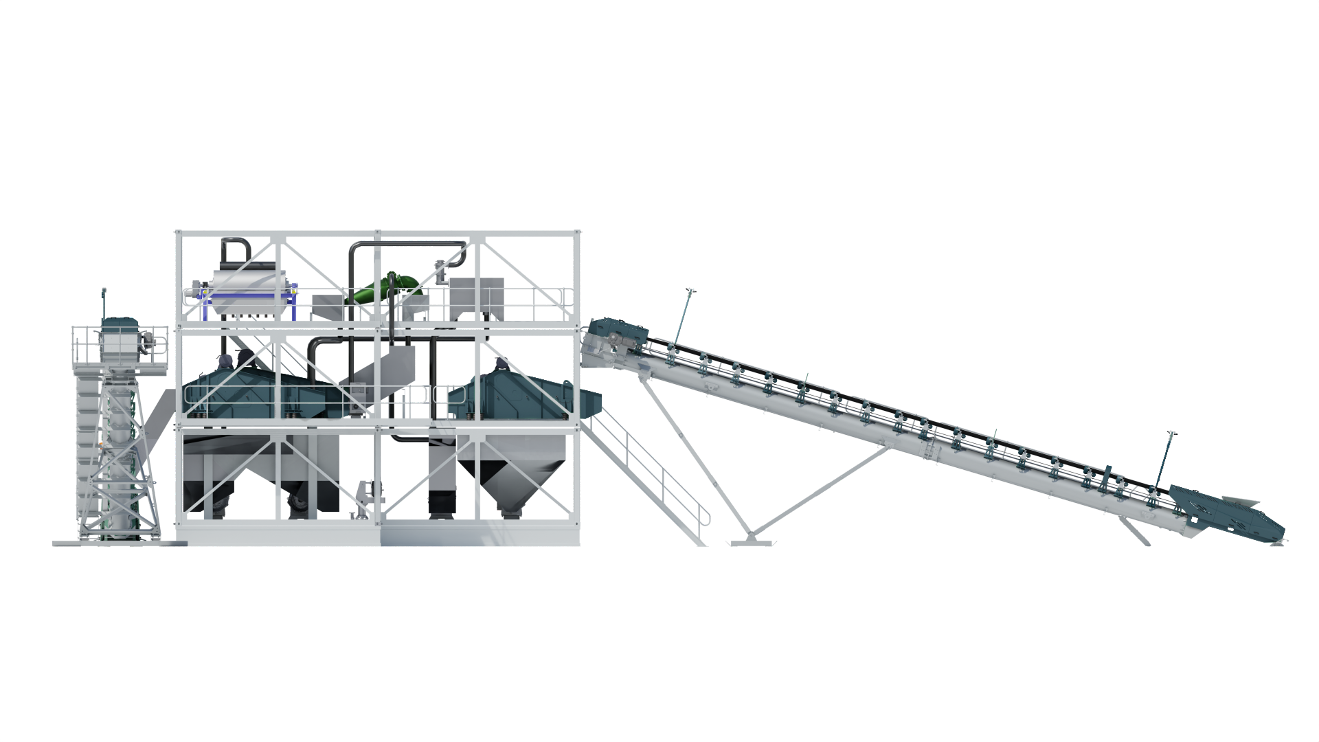 - Washing and Sorting: Material is washed through the fines screen feeder before entering the sorter. Effluent from washing is collected for disposal or further processing as needed.